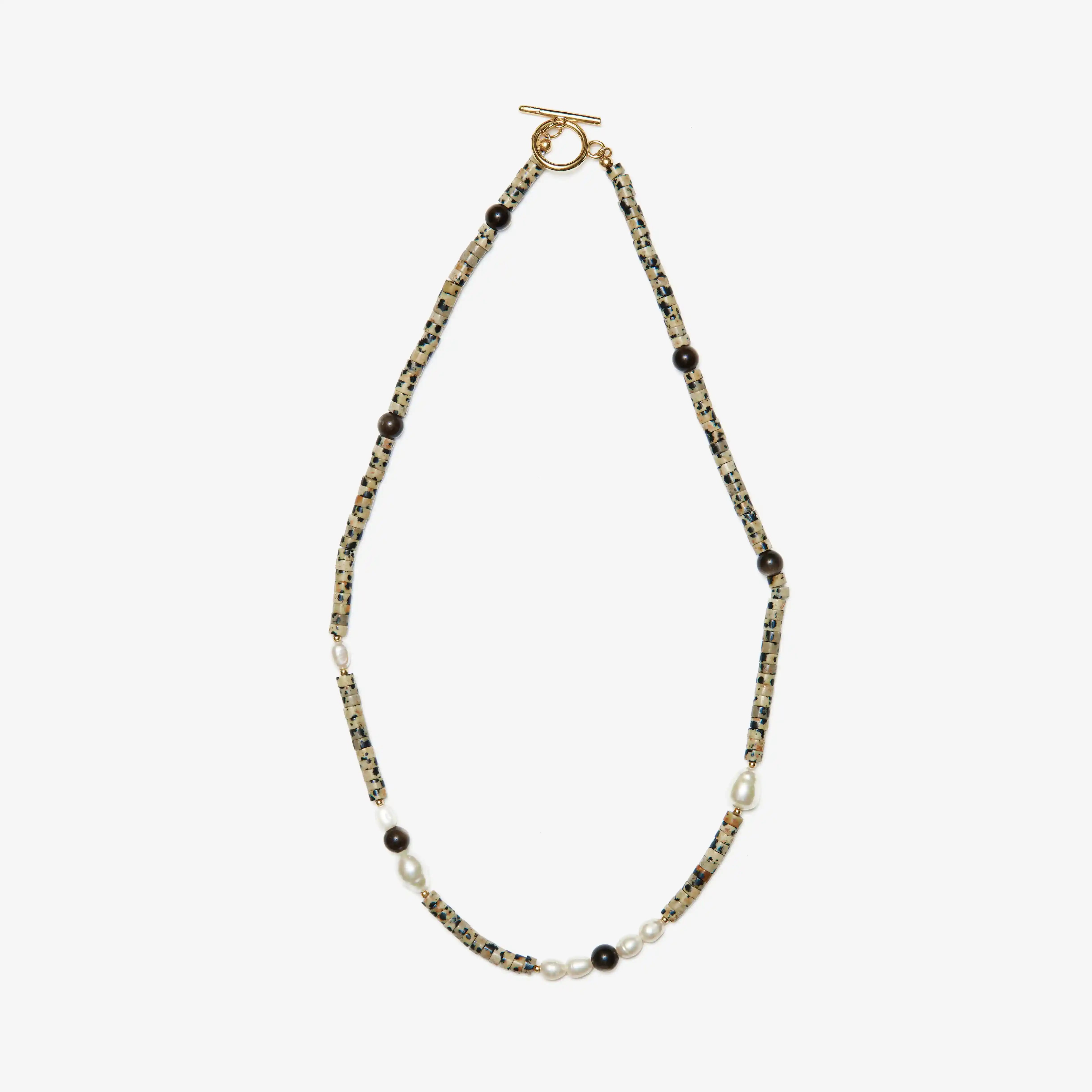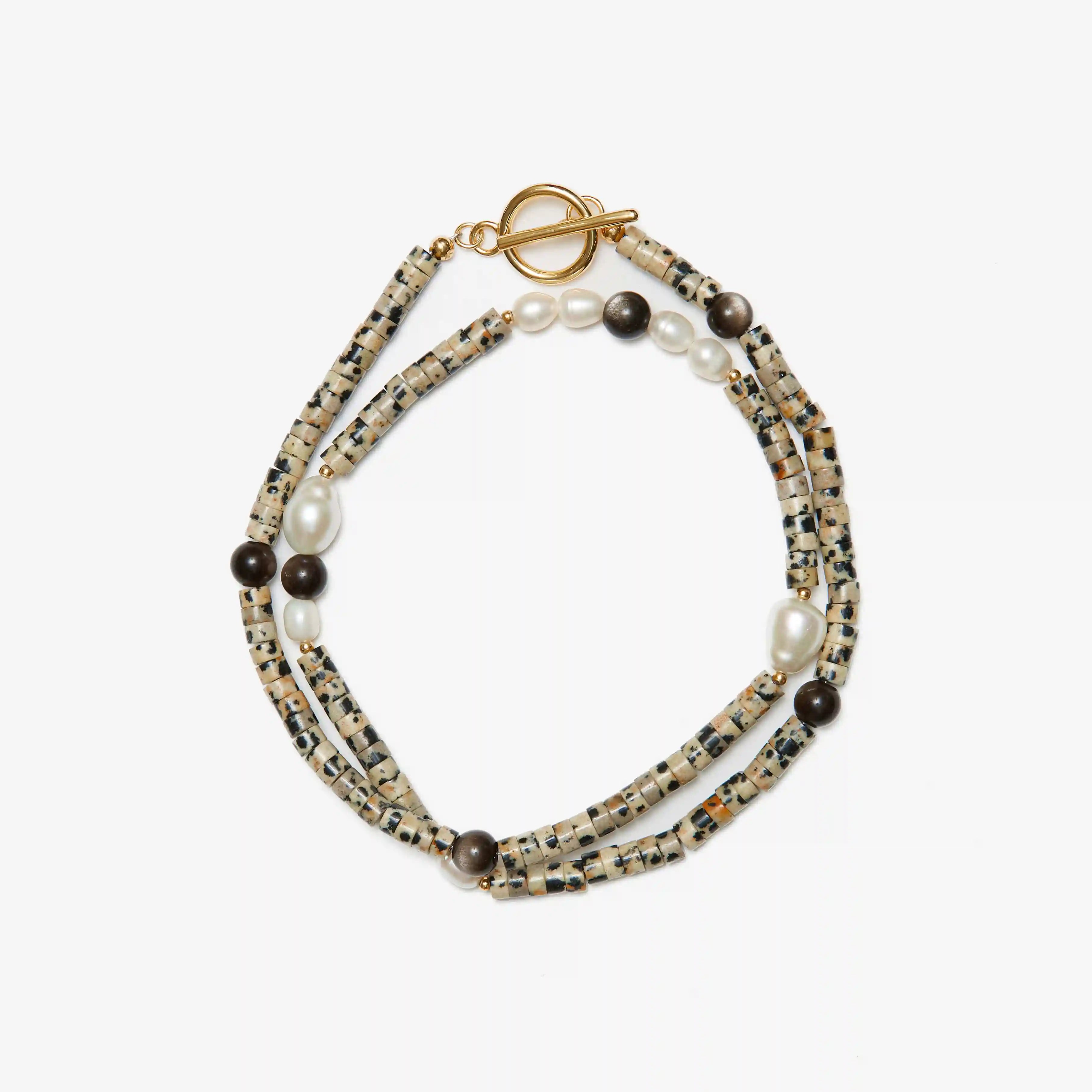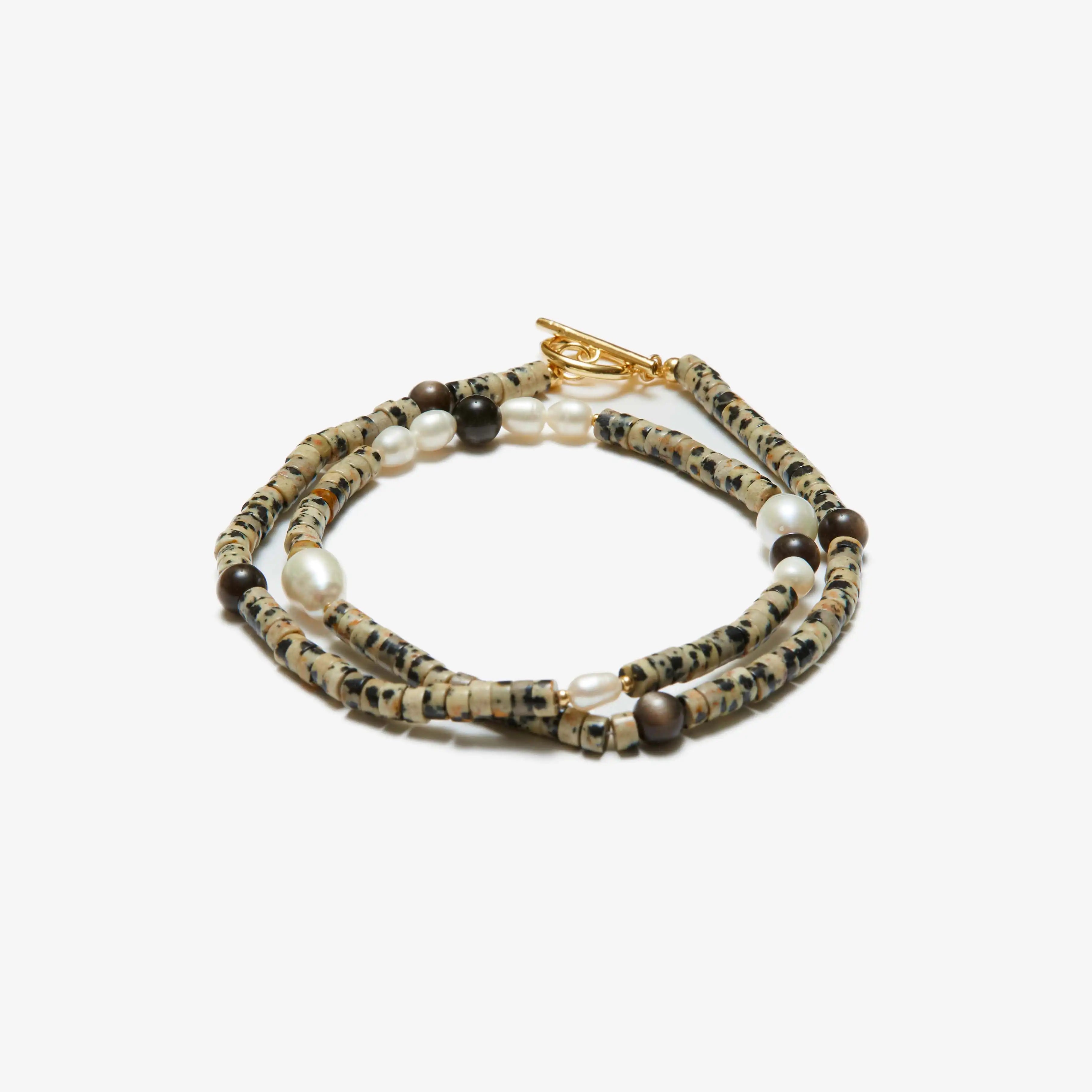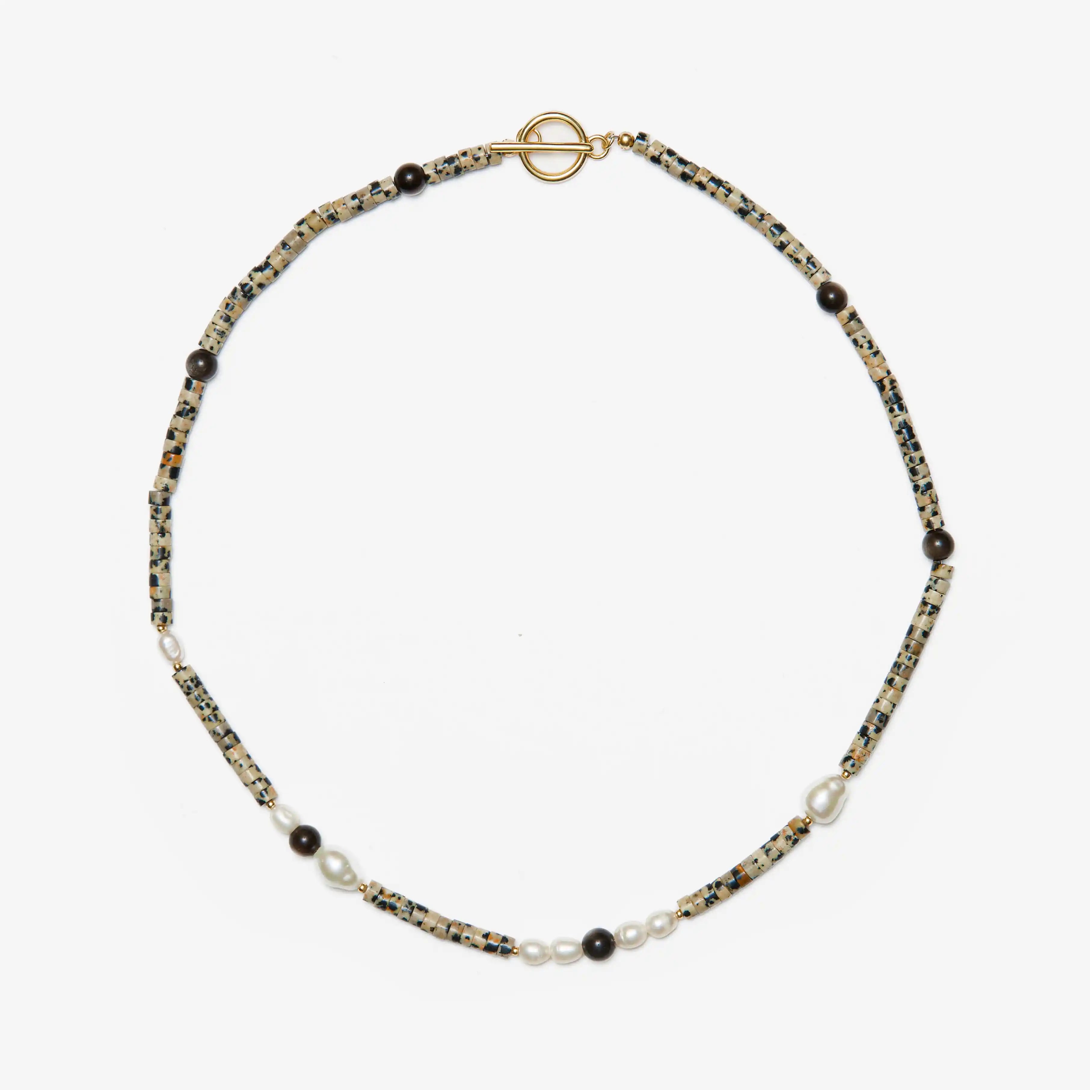Halfable Pearl with Spotted Jasper and Silver Obsidian Necklace