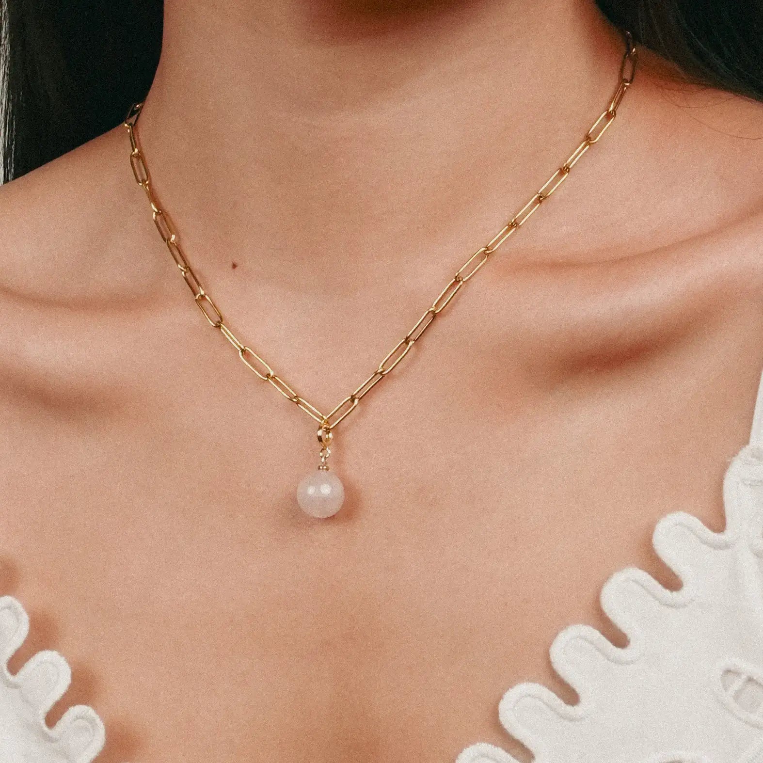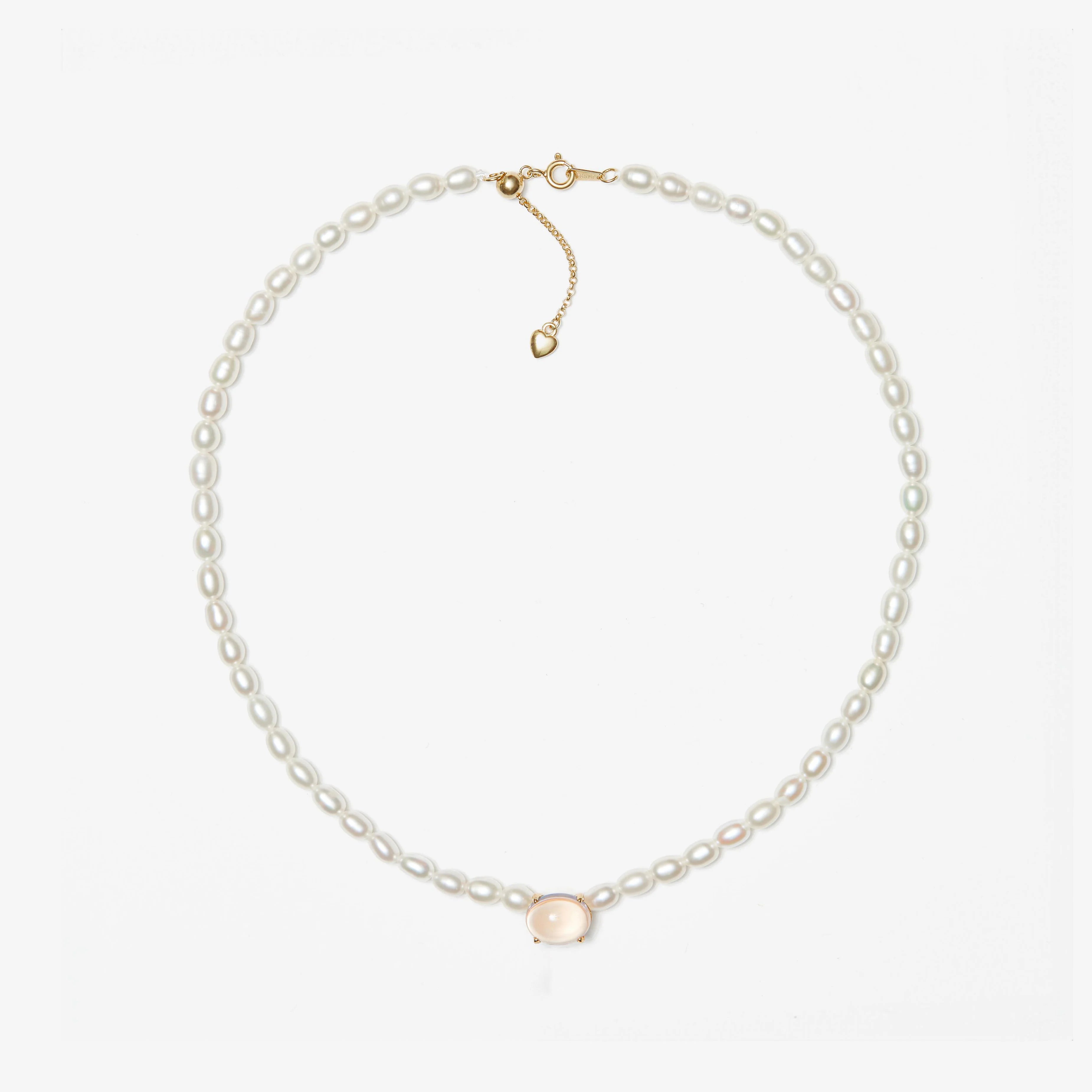 Halfable Pearl with Rose Quartz and Jade Necklace